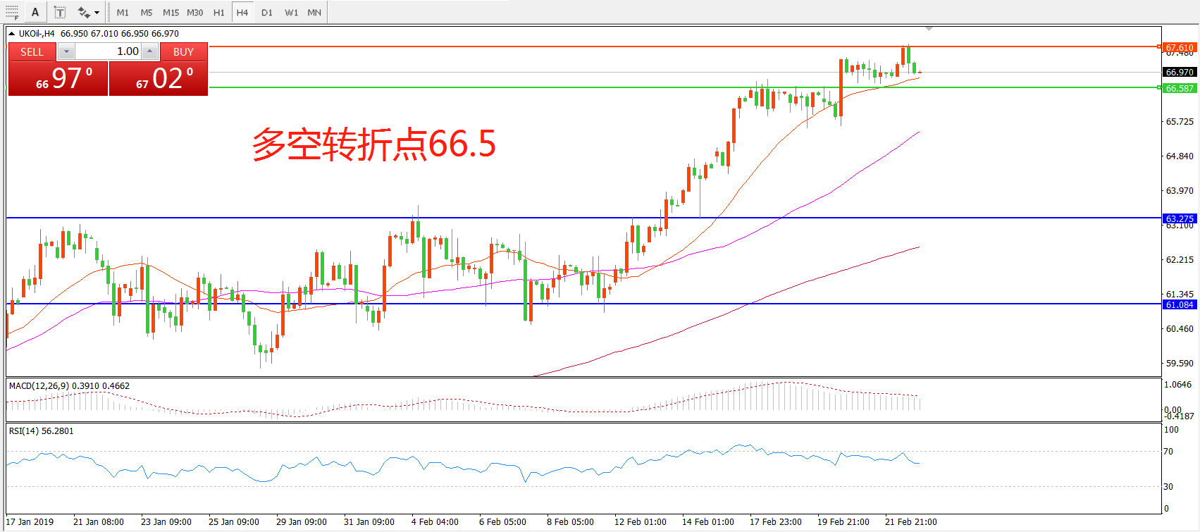 交易策略:在66.50之上看涨,目标67.50 70.00