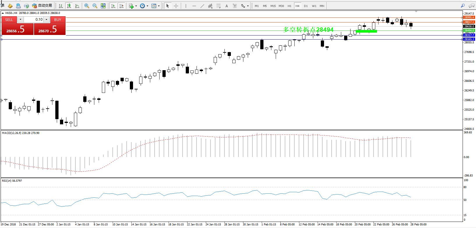 恒指HK50 ——4小时K线图显示: