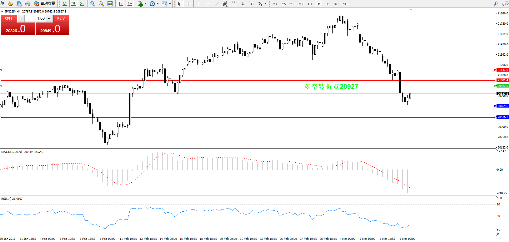 日经指数JPN225——4小时K线图: