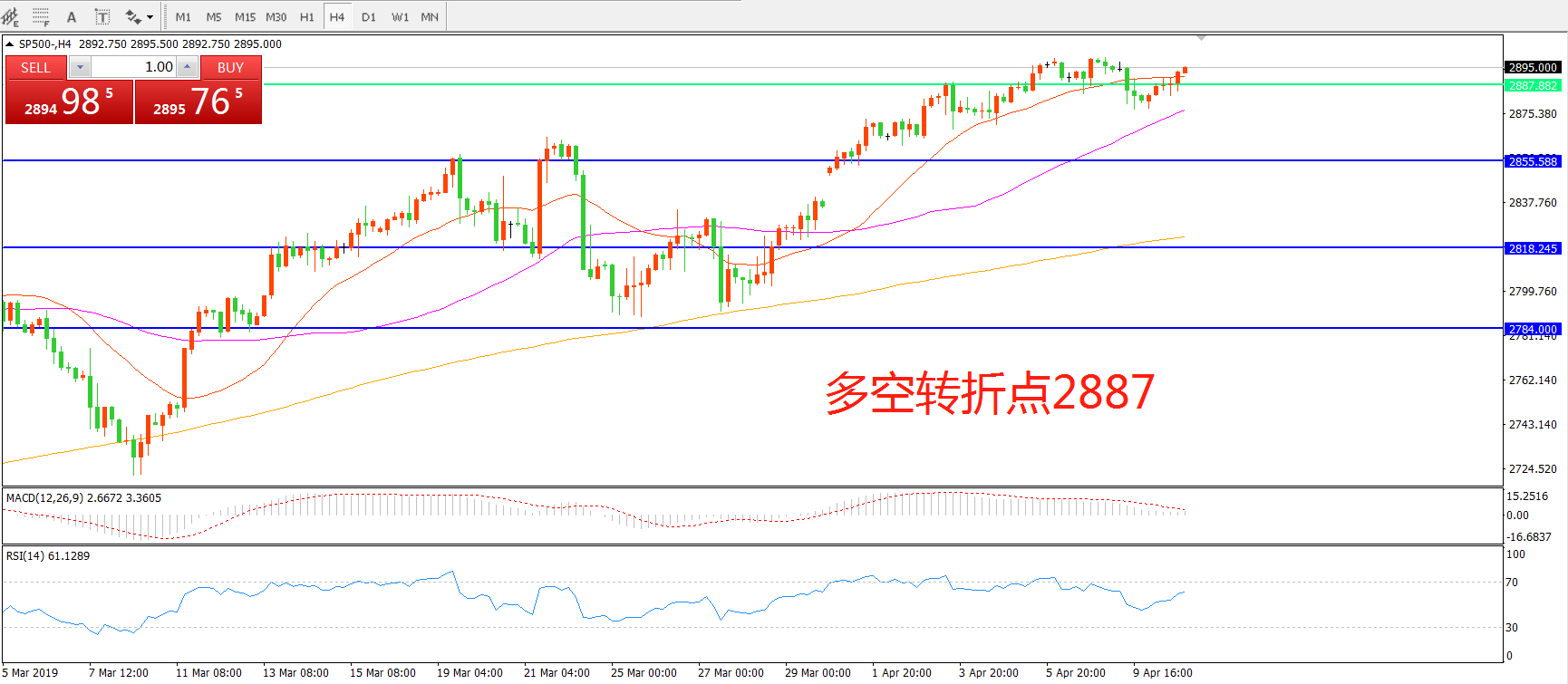 多空转折点:2887.00