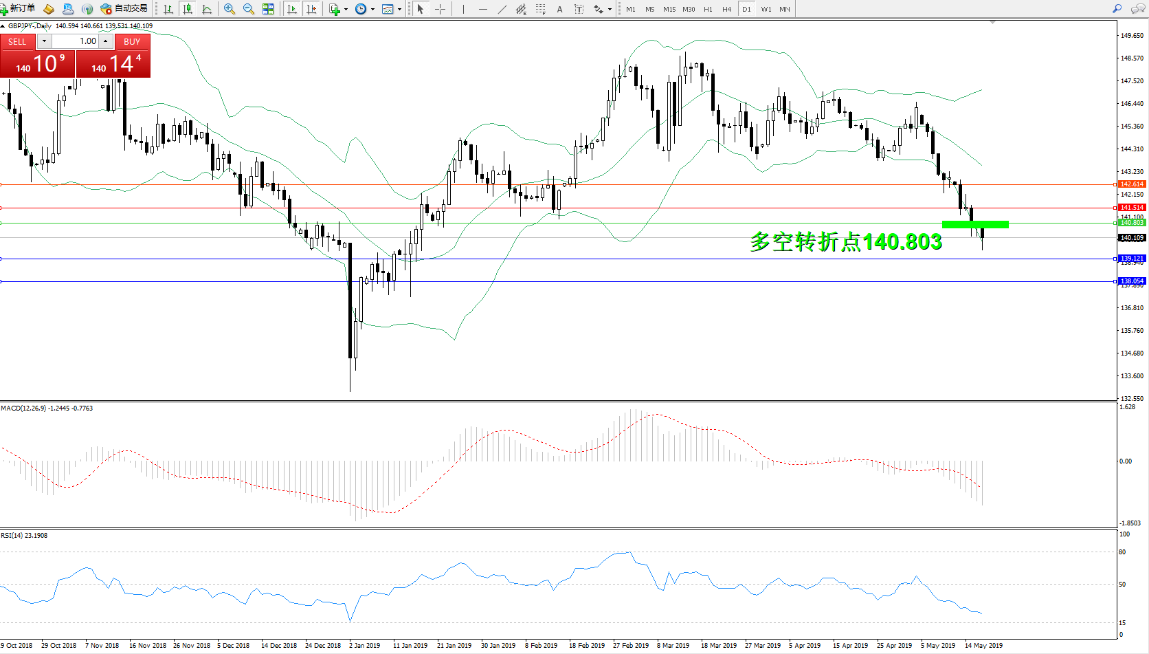 交易策略:140.803下方看跌,目标139.121、138.054