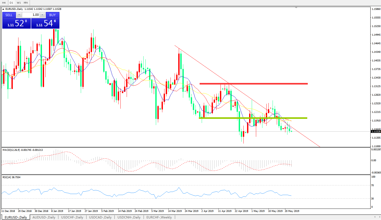 交易策略:在1.1200之下,看跌,目标价位为 1.1100,然后为1 .1030。