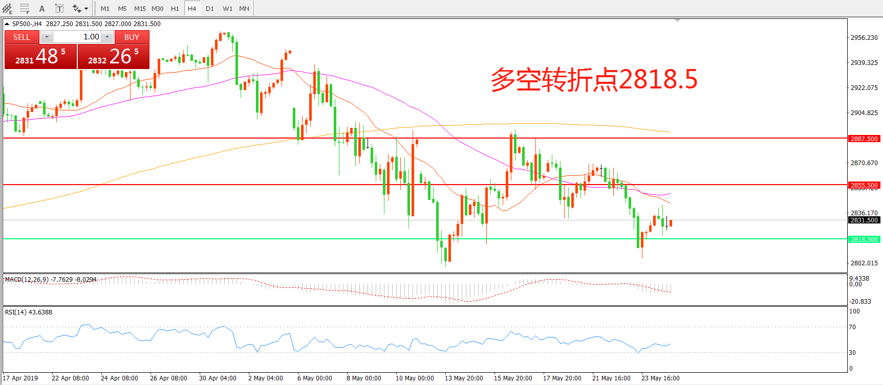 多空转折点:2818.50