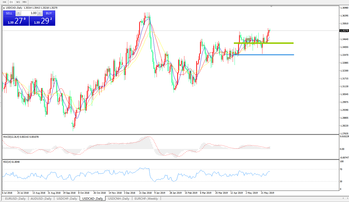 美元兑加元USDCAD 日线图: