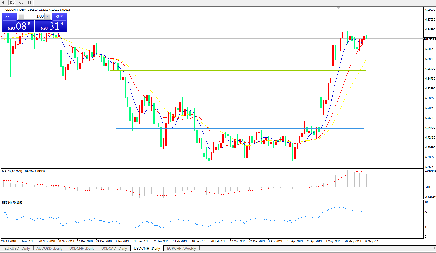 交易策略: 在6.8450之上,看涨,目标价位为6.9200,然后为6.9400。