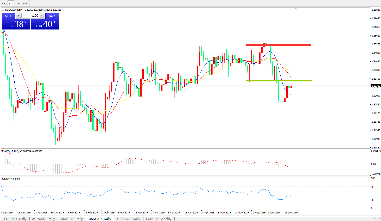 美元兑加元USDCAD 日线图: