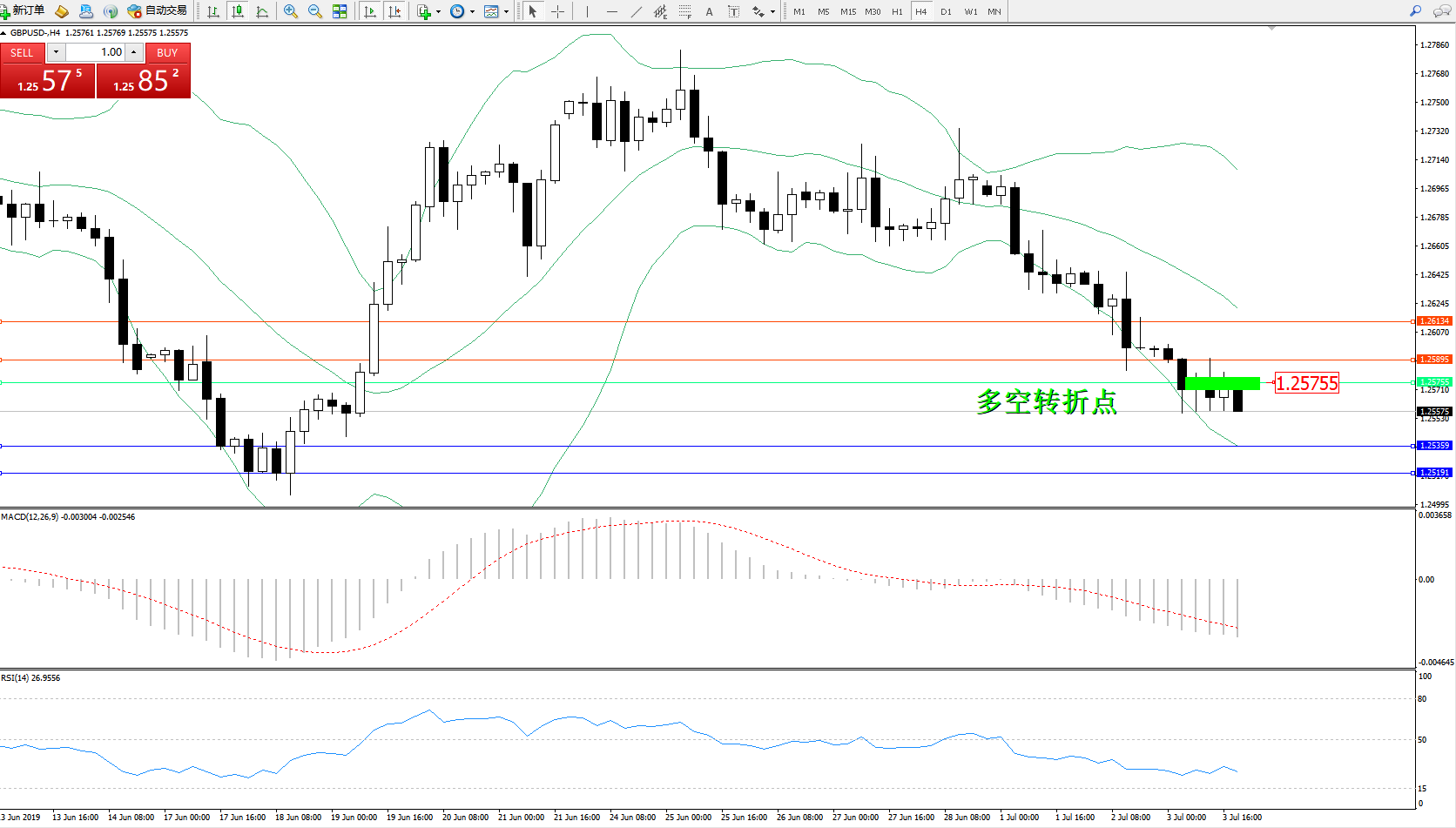 交易策略:1.25755下方看跌,目标1.253591.25191