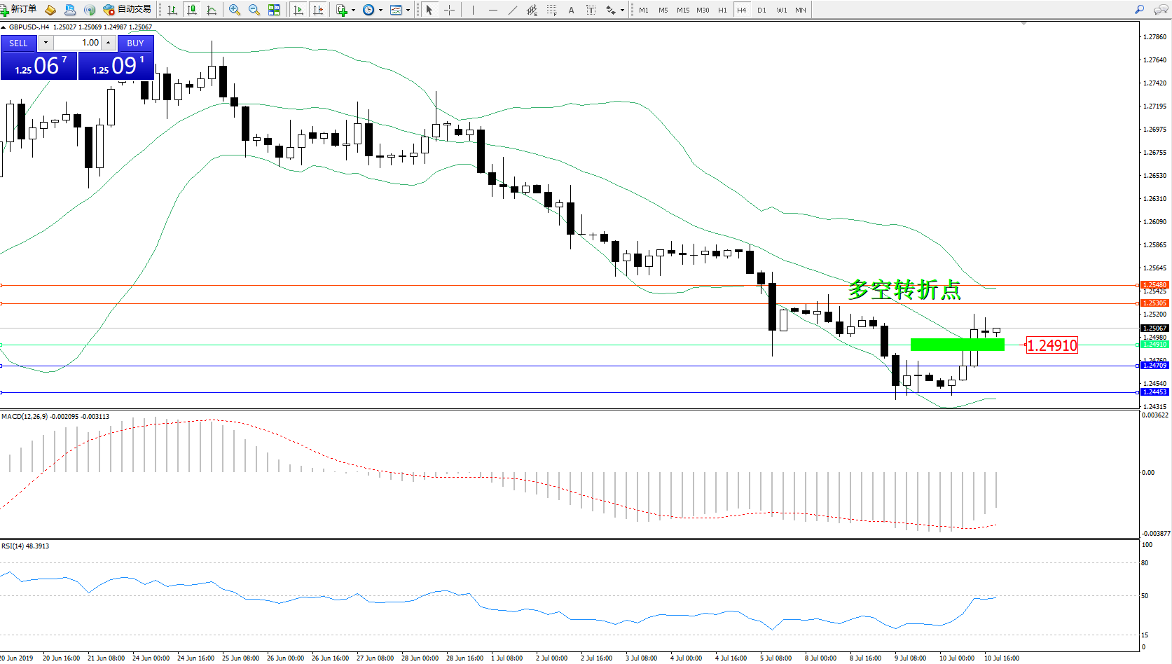 交易策略:1.24910上方看涨,目标1.25305、1.25480