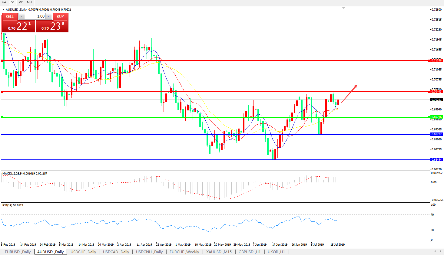 交易策略:0.6960上方看涨,目标0.70200.7100