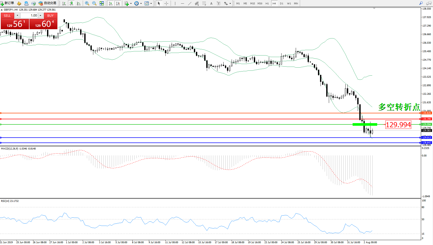 交易策略:129.994下方看跌,目标129.013128.642