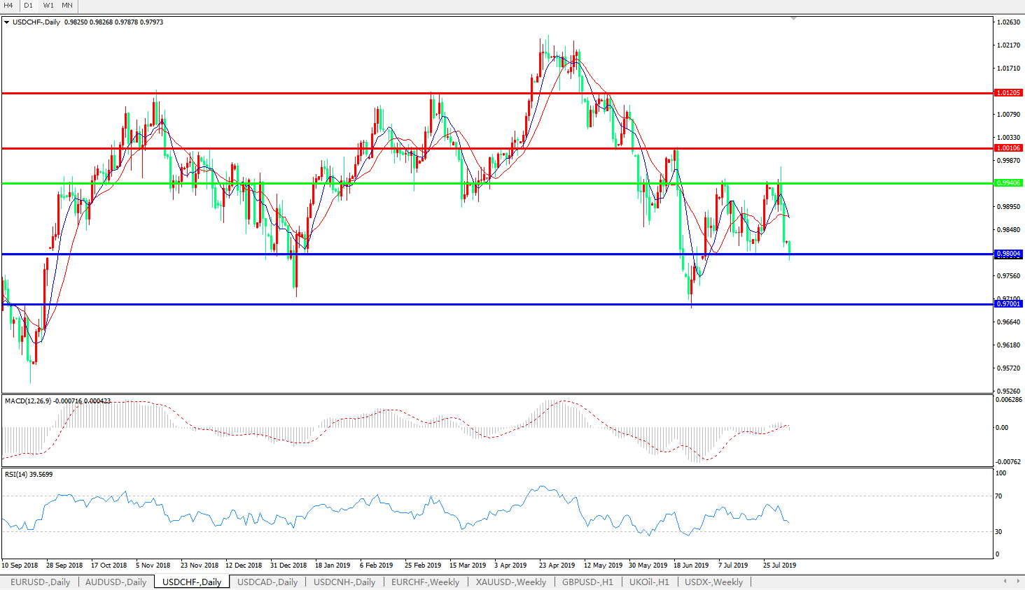 支撑位:0.9800、0.9700