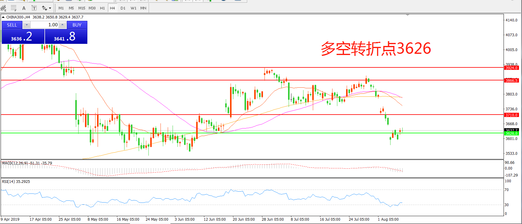 多空转折点:3626.00