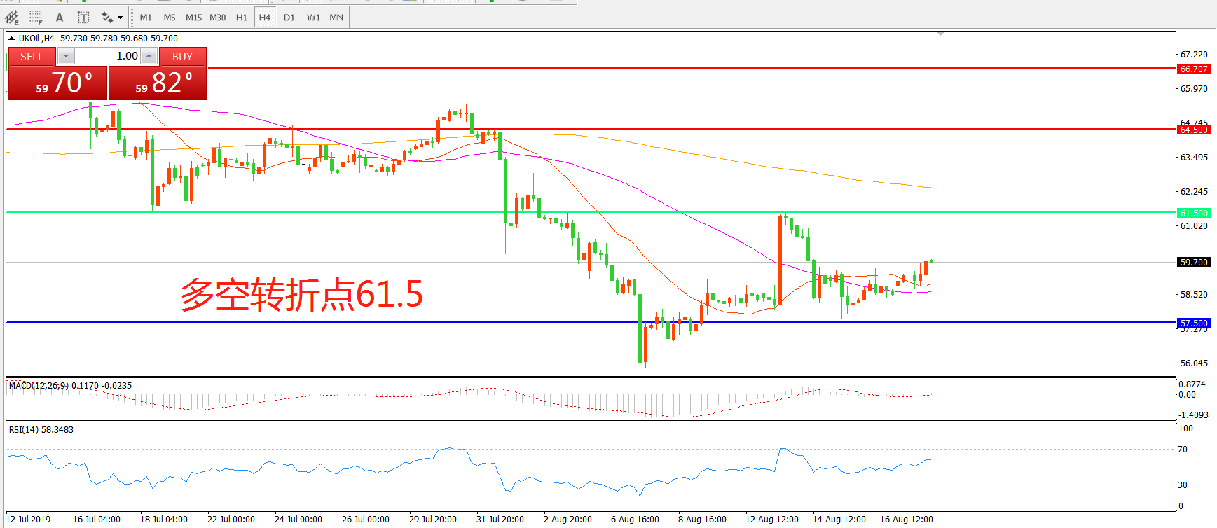 多空转折点:61.50