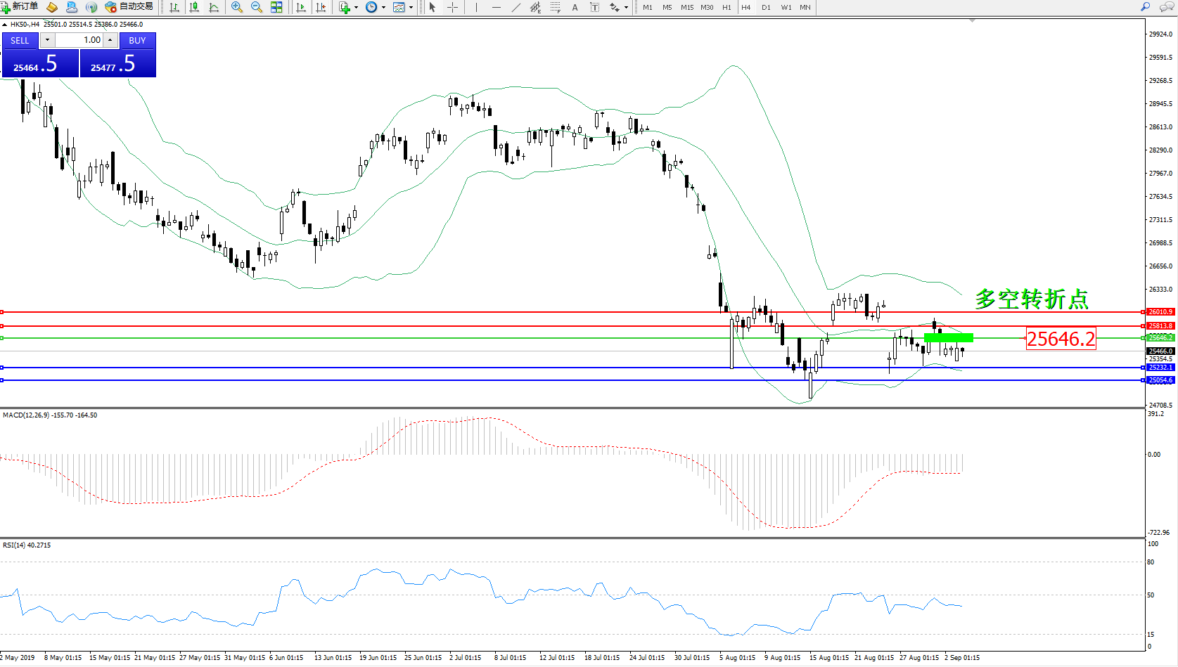 交易策略:25646下方看跌,目标25232、25054