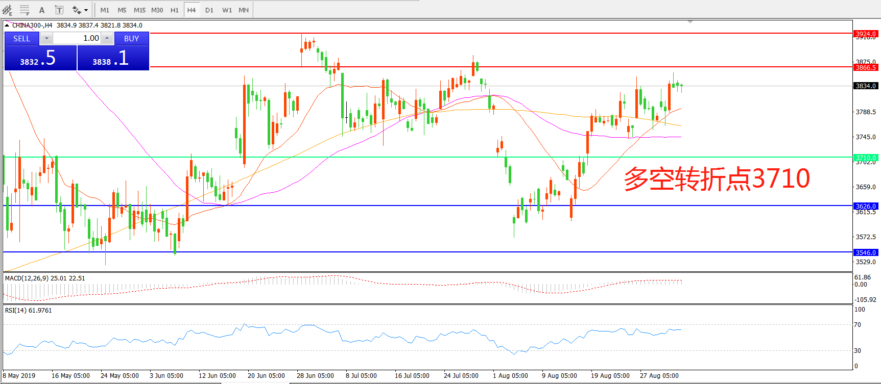 多空转折点:3710.00