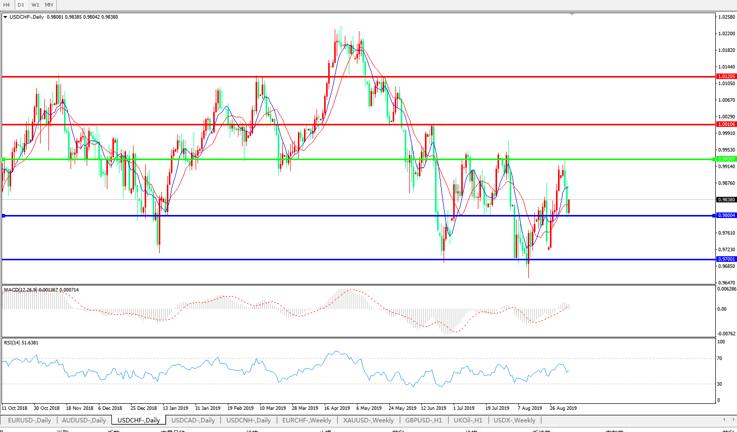 美元兑瑞郎USDCHF 日线图: