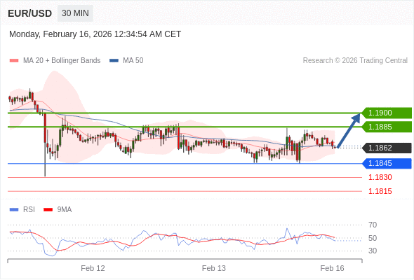 在 1.1845 之上,看涨,目标价位为 1.1885 ,然后为 1.1900 。