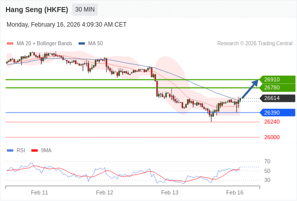 在 26390 之上,看涨,目标价位为 26780 ,然后为 26910 。
