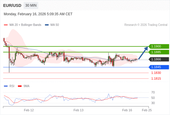 在 1.1845 之上,看涨,目标价位为 1.1885 ,然后为 1.1900 。