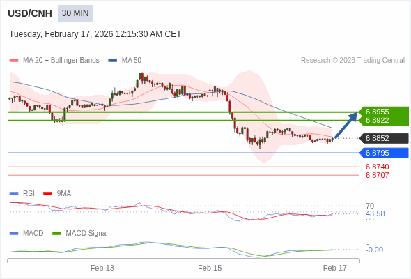 替代方案: 在6.8795以下,期待6.8740和6.8707。