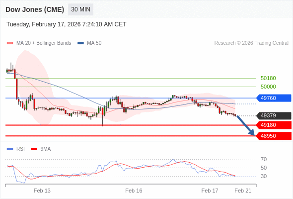 在 49760 之下,看跌,目标价位为 49180 ,然后为 48950 。
