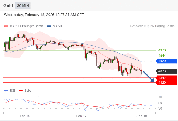 在 4920 之下,看跌,目标价位为 4842 ,然后为 4820 。