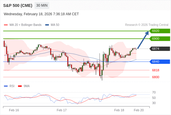 在 6840 之上,看涨,目标价位为 6900 ,然后为 6920 。