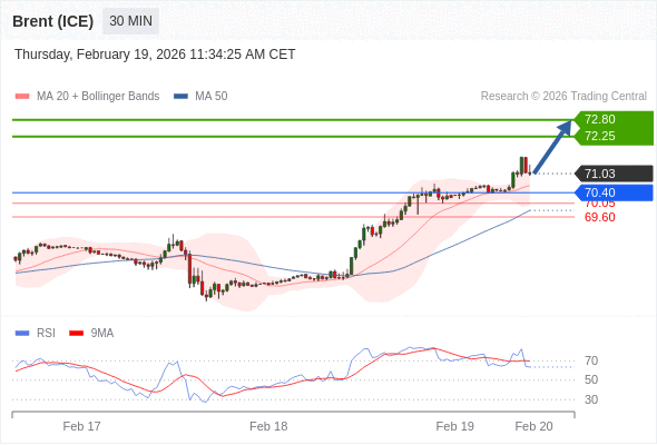 在 70.40 之上,看涨,目标价位为 72.25 ,然后为 72.80 。