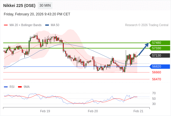 在 56820 之上,看涨,目标价位为 57330 ,然后为 57480 。