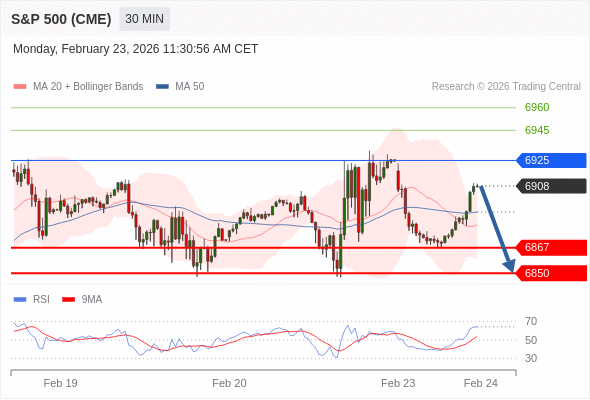 交易策略: 在 6925 之下,看跌,目标价位为 6867 ,然后为 6850 。