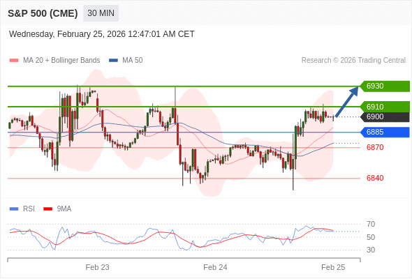 在 6885 之上,看涨,目标价位为 6910 ,然后为 6930 。