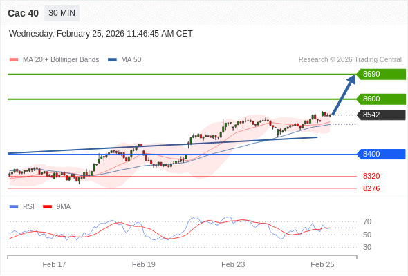 在 8400 之上,看涨,目标价位为 8600 ,然后为 8690 。