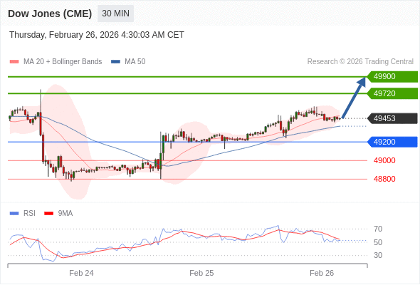 在 49200 之上,看涨,目标价位为 49720 ,然后为 49900 。