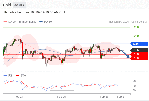 在 5215 之下,看跌,目标价位为 5168 ,然后为 5150 。