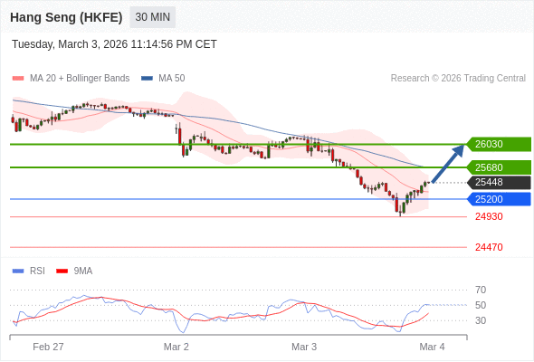 在 25200 之上,看涨,目标价位为 25680 ,然后为 26030 。