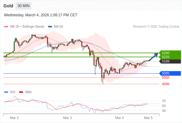 在 5085 之上,看涨,目标价位为 5225 ,然后为 5260 。