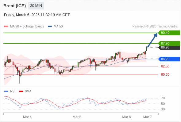 在 84.20 之上,看涨,目标价位为 87.90 ,然后为 90.40 。