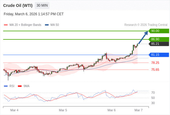 在 81.15 之上,看涨,目标价位为 86.90 ,然后为 90.00 。