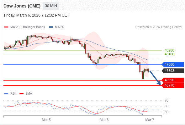在 47660 之下,看跌,目标价位为 46990 ,然后为 46770 。