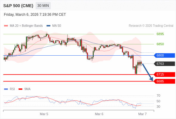 在 6800 之下,看跌,目标价位为 6715 ,然后为 6685 。