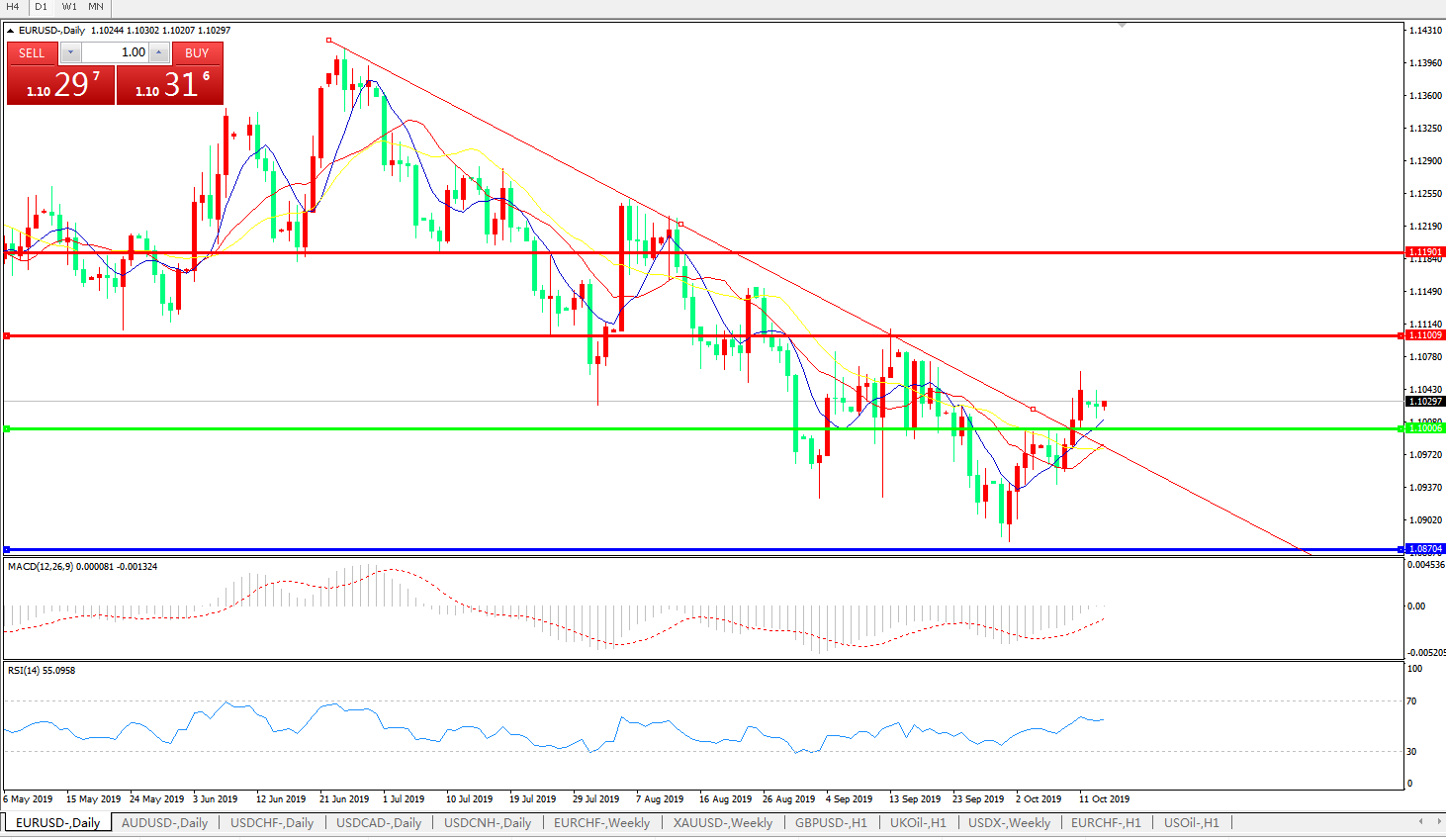 交易策略:1.1000上方看涨,目标1.1100、1.1190