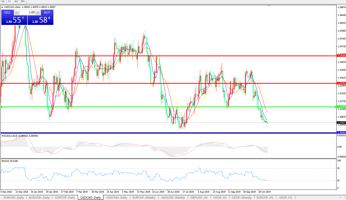 美元兑加元USDCAD 日线图: