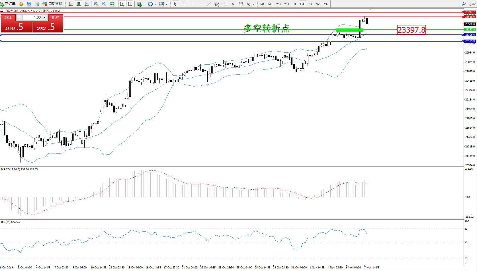 交易策略:23397上方看涨,目标23626、23707
