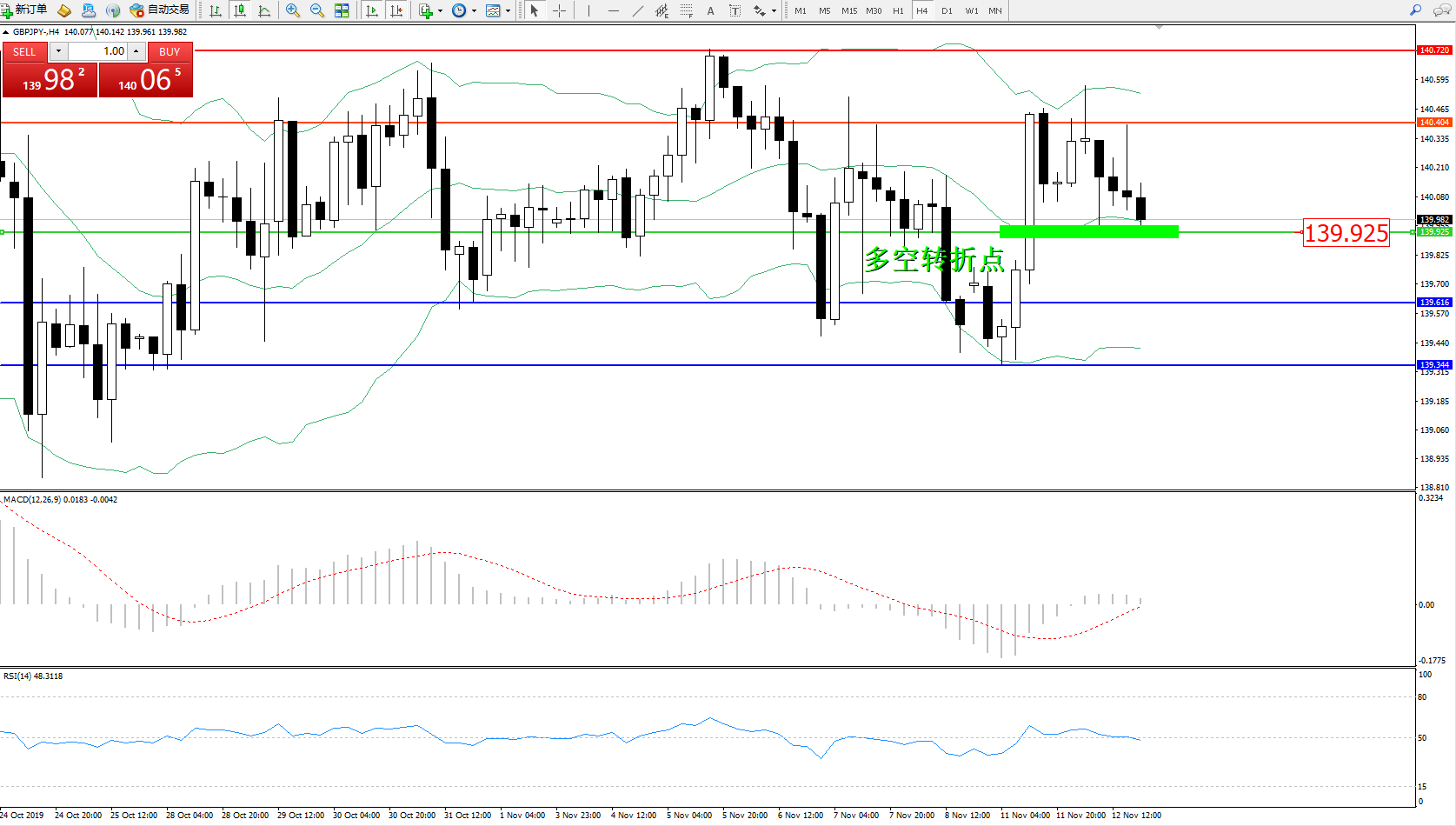 交易策略:139.925上方看涨,目标140.404140.720