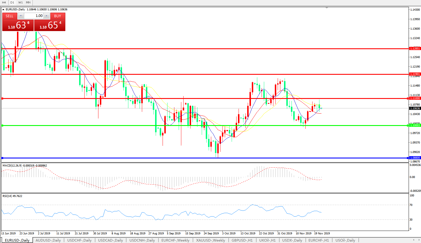 交易策略:1.1000上方看涨,目标1.1100、1.1190
