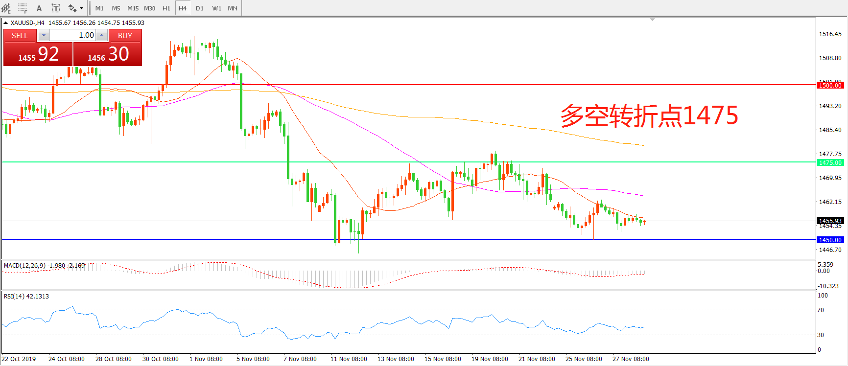 多空转折点:1475.00