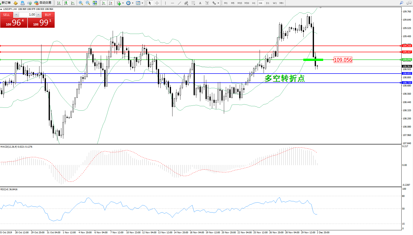 交易策略:109.056下方看跌,目标108.855108.720