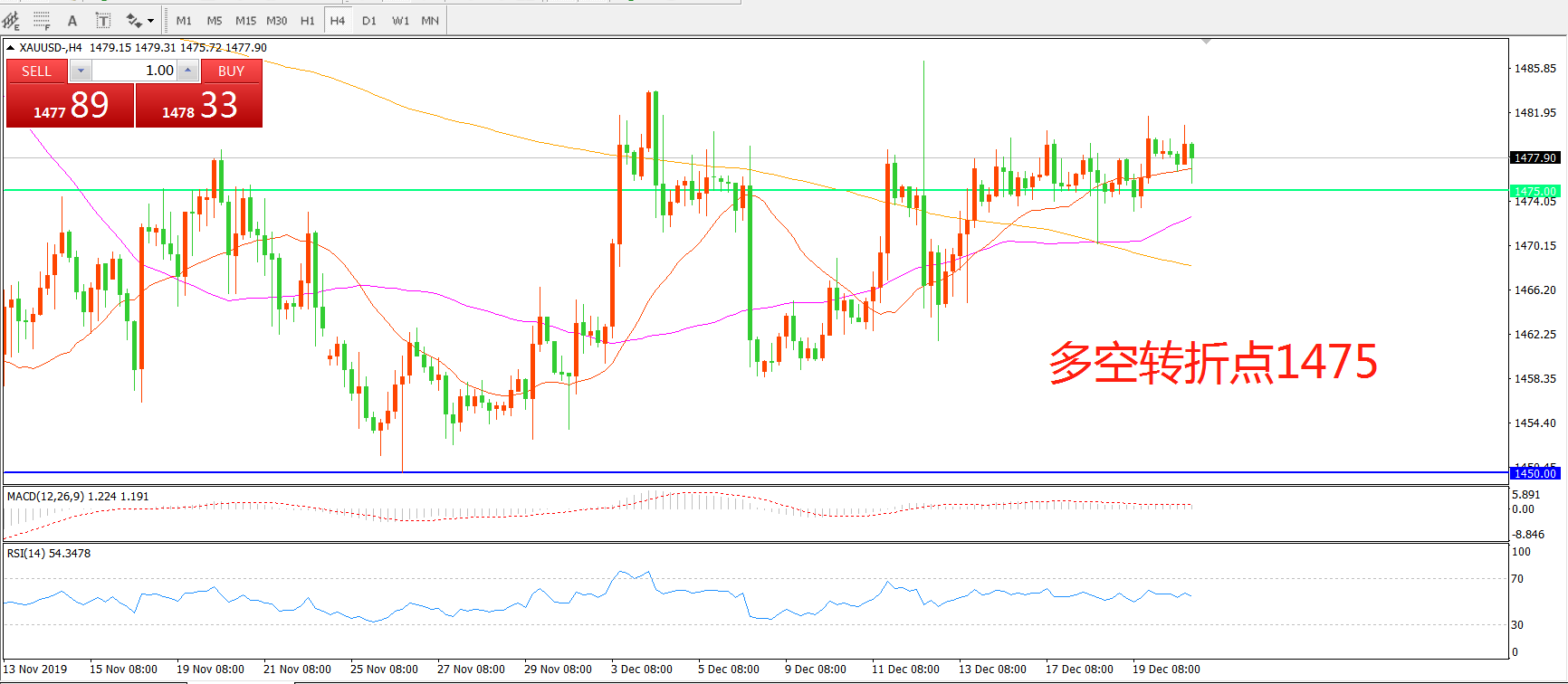 多空转折点:1475.00