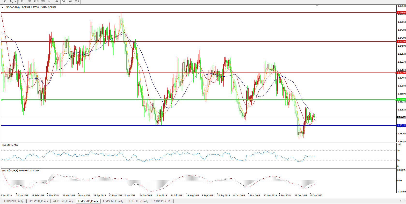 美元兑加元USDCAD 日线图: