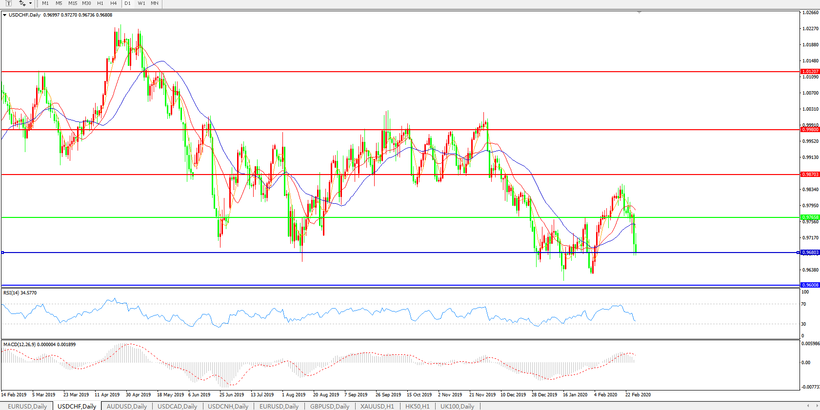 美元兑瑞郎USDCHF 日线图: